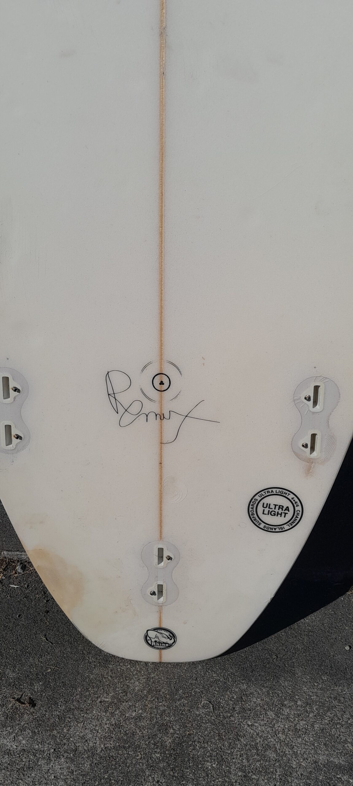 7′ x 13″ x 19 1/2″ x 14 1/2″ x 2 in good solid condition, step up model fcs2 boxes lots of life left. a quality made Taranaki made board