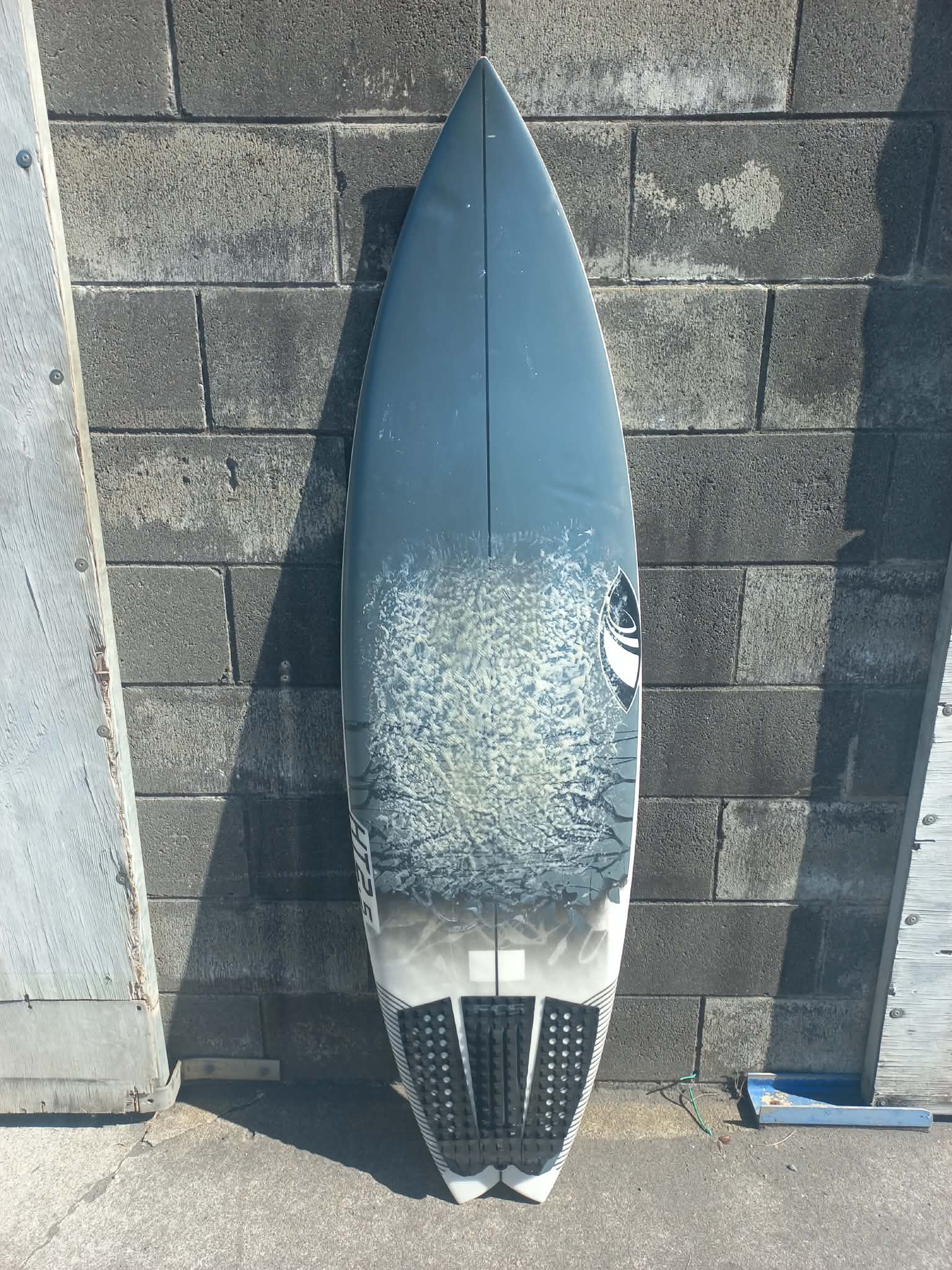 Hand-shaped in Taranaki this board is based on the Syrena model, usually a performance shortboard 5 fin with a standard centre width, but a wider tail.