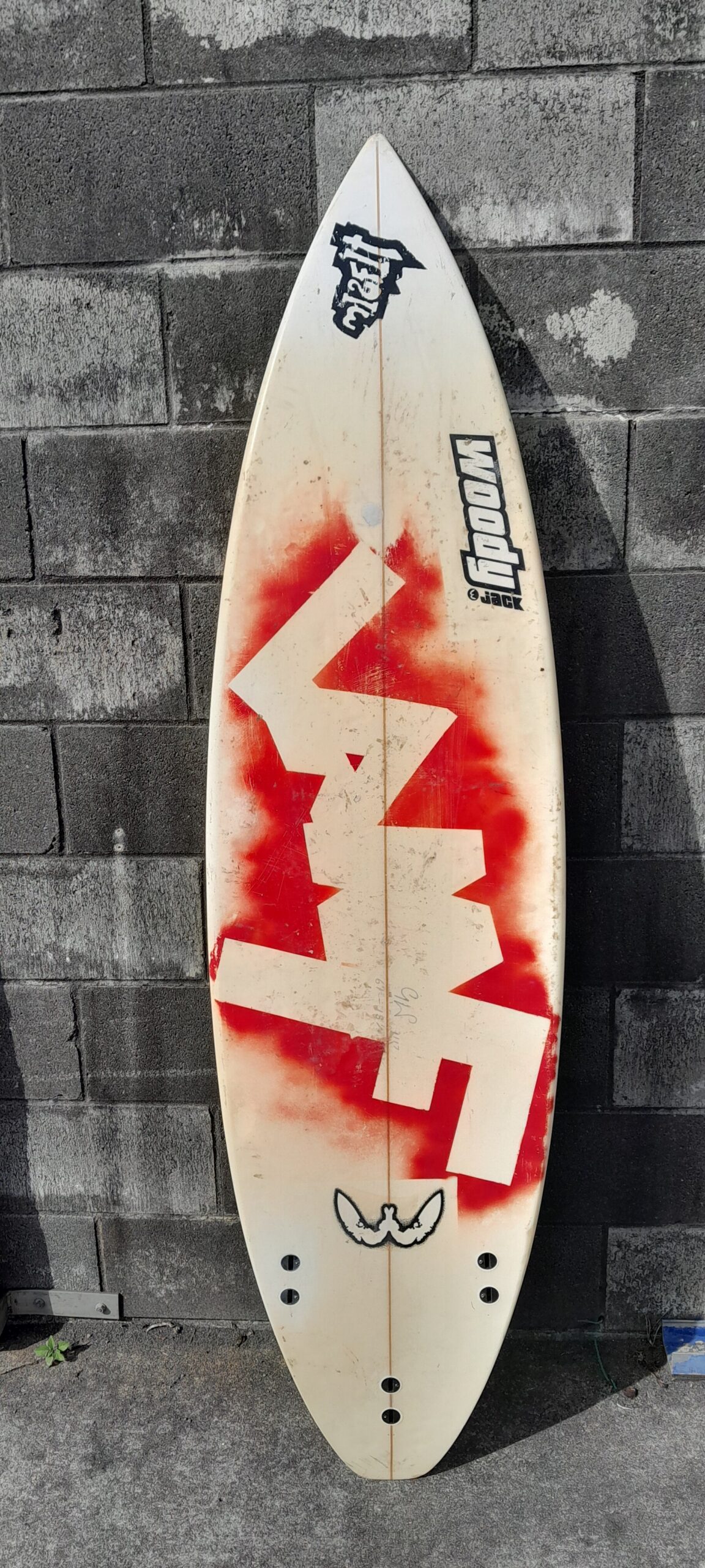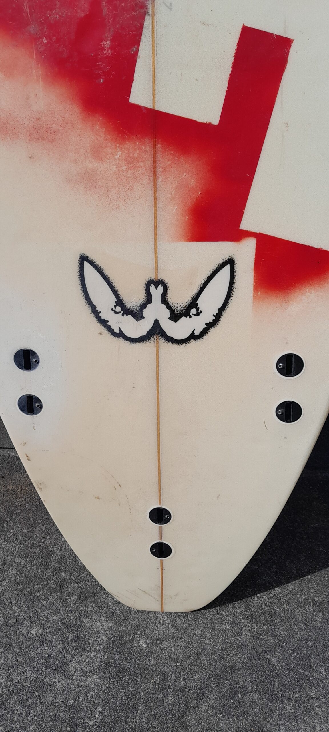 Hand-shaped in Taranaki this board is based on the Syrena model, usually a performance shortboard 5 fin with a standard centre width, but a wider tail.