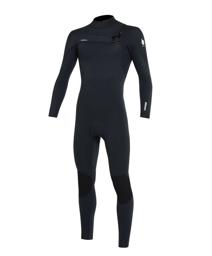 44 – 53° F / 8 -12 C WARMTH & STRETCH • 100% Super stretch Japanese limestone based neoprene – lighter, warmer, softer, stretchier, easier to put on and take off, and allows for more freedom of movement • Full body Thermal lining. Main body: Brain Fuzz hollow fiber insulates heat and dries fast. Legs: Eco Plush stretch thermal for warmth and movement. • Dope Dyed Fabric- A softer, eco-friendly, anti-fade made by Bluesign approved…