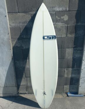 5’11. 19.65 x 2.63. 32.5Lt Epoxy Stringerless Carbon. Some deck compressions on deck, some discoloring due to the old paint job, other than that its in good nic. FCSII Fin boxes.