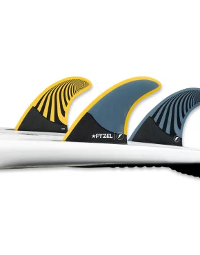DESCRIPTION The Pyzel thruster, designed by North Shore shaper Jon Pyzel, is in the Neutral template category. The Honeycomb construction with carbon fiber at the base of the fin provides a balanced feel for all-around performance. Template Category – Neutral (all-around | versatile) Construction – Honeycomb w/ Carbon Ride Number – Balanced – 6.2 Suggested Wave Type – All types | All conditions Size – Large (165+ lbs) SPECS: Side Fins Center Fin Area 16.00…