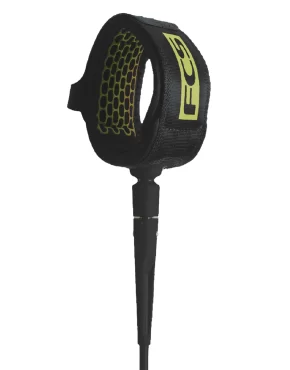 Overview Inspired by the revolutionary freedom leash. The FCS essential series leash has been streamlined into a light, durable and super comfortable leash that is built to handle all conditions. Features Cord thickness: 7mm Wave Size: 2 – 8 ft In-cuff silicone grip, preventing ankle twisting Hypalon pull tab for ease of release Extra strength moulded velcro Extended over mould reduces tangles The contoured horn conforms to the shape of the ankle